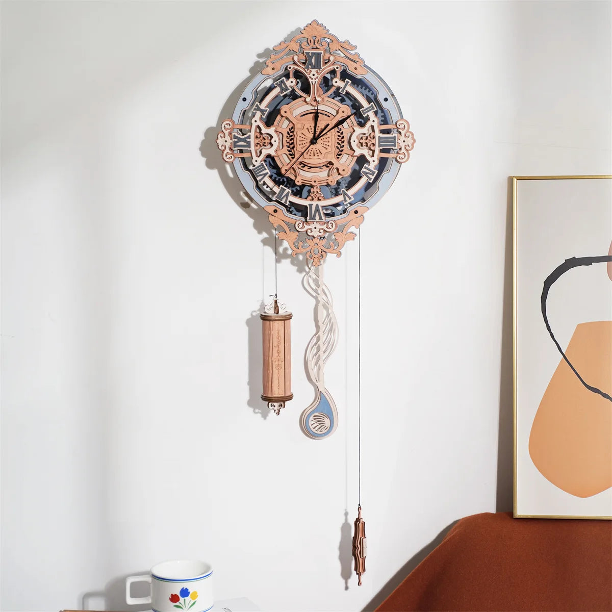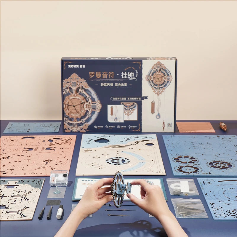 ROKR Romantic Notes Wall Clock 3D Wooden Puzzle Model Toys for Children Kids