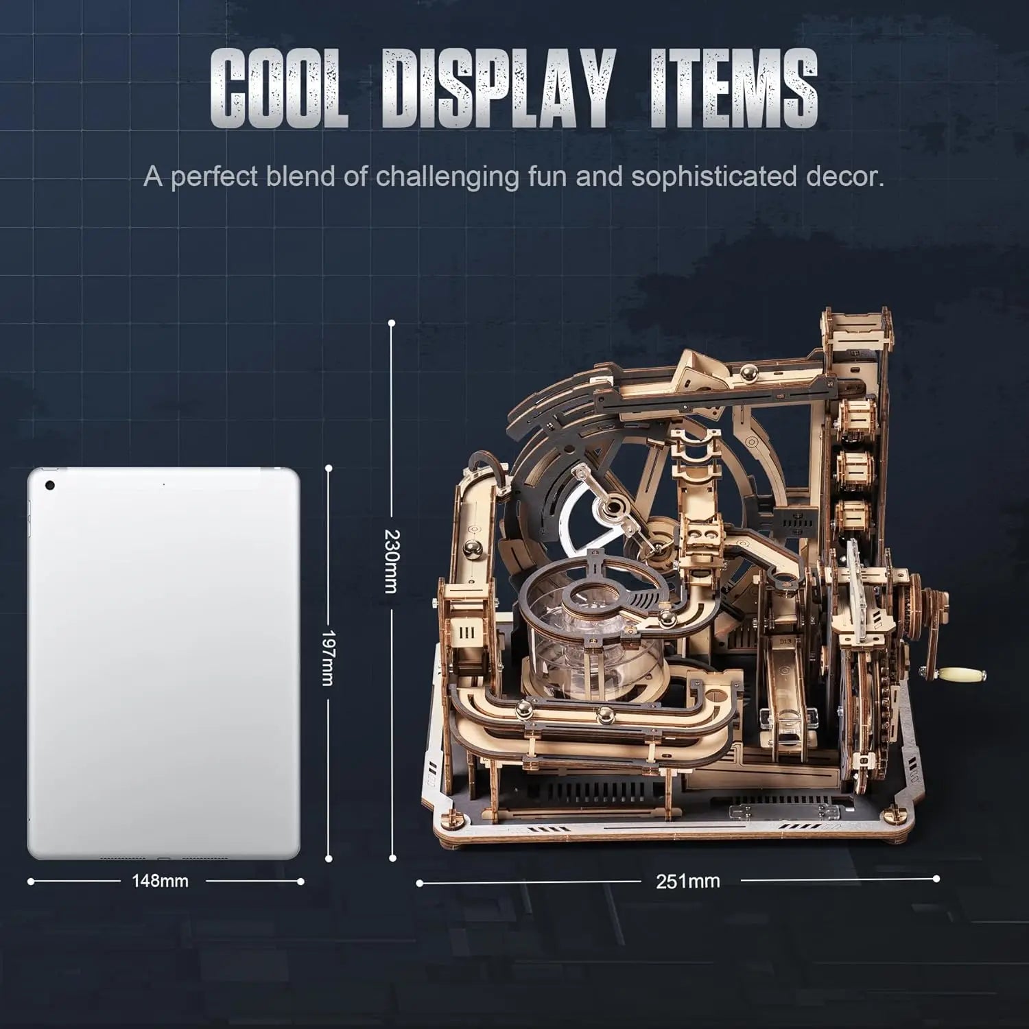 👍【6-Level Diversion & 5 Forward Tracks, Rich in Detail】Dive into a world of intricate design with horizontal and vertical diverters, enclosed ascending chambers, Z-shaped lifting stairs, gravity star rings, ball diversion hubs, double-deck viaducts, and more. Immerse yourself in the futuristic allure of our 3D wooden mechanical model kits for adults.