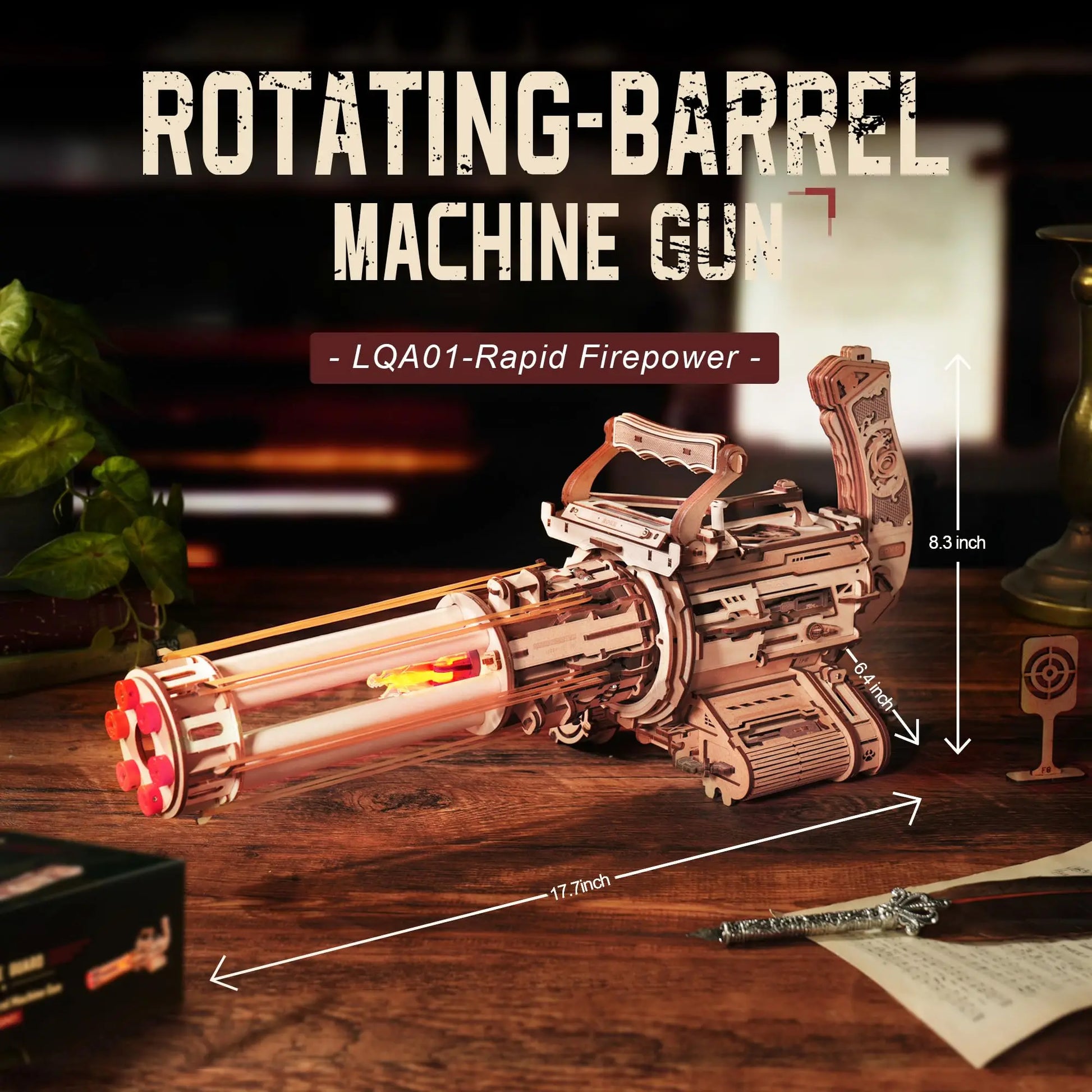 Rokr [Rotating-Barrel Machine Gun] Toy with Light 3D Wooden Puzzle for Kids Adults Building Block Rokr Puzzle Kits